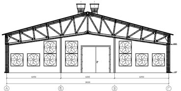 Высота от 2,5 м до 6 м, ширина 15, 18, 21 и 24 м, длина также может быть разной и кратна колоннам. Это удобные для выращивания птицы и для обработки сооружения, которые отличаются более просторными размерами, подходящими для бойлера.