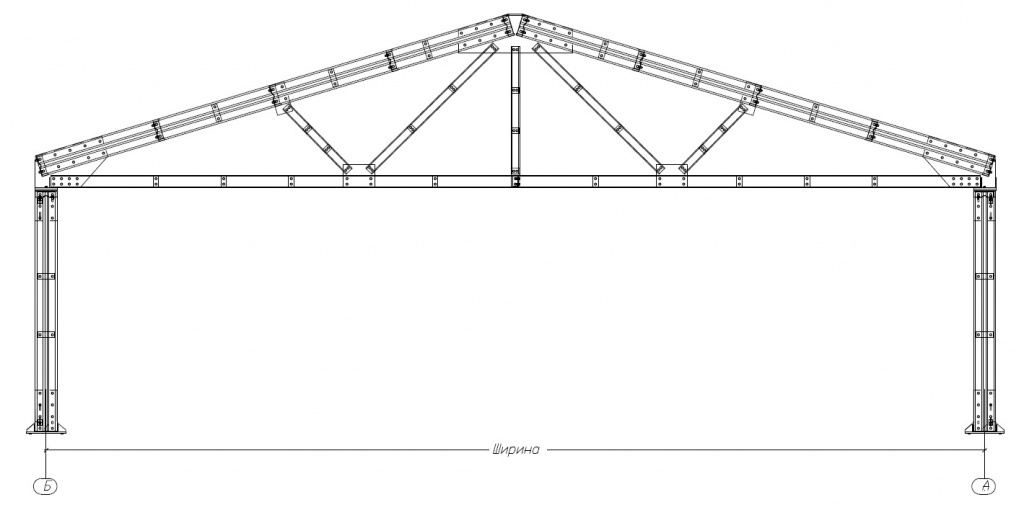 - Элементы каркаса здания выполнены из гнутых оцинкованных металлических профилей, соединенных болтами через фасонные элементы.